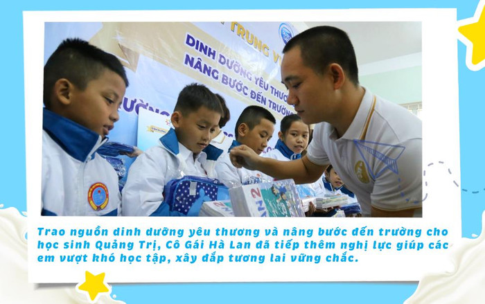 Chương trình “Dinh dưỡng yêu thương – Chung tay chia sẻ” đã đến với Quảng Trị, trao tặng tập vở, sách giáo khoa, bàn ghế và sữa Cô Gái Hà Lan cho 1.700 học sinh tiểu học tại 5 trường này.