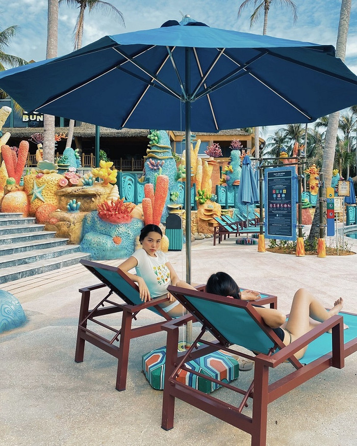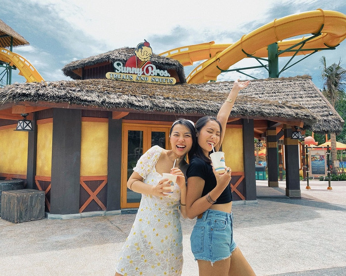 Và sau khi chơi đã, chụp mệt, nhớ đừng quên nghỉ chân bên những chòi nhỏ và thưởng thức ly nước mát lạnh, ngon mê ly từ những quầy bán đồ uống nhỏ xinh có thể dễ dàng bắt gặp tại mọi nơi trong công viên nước.