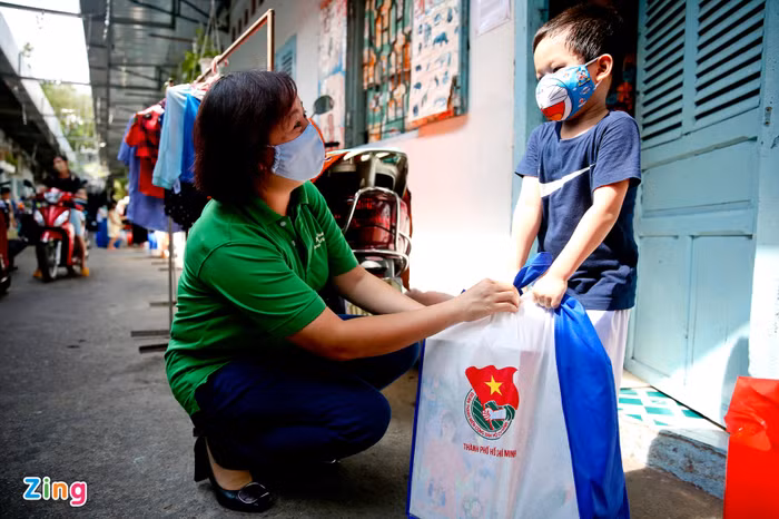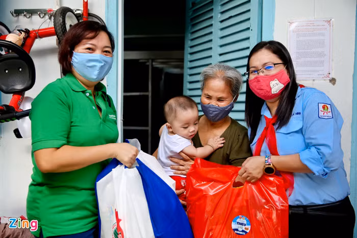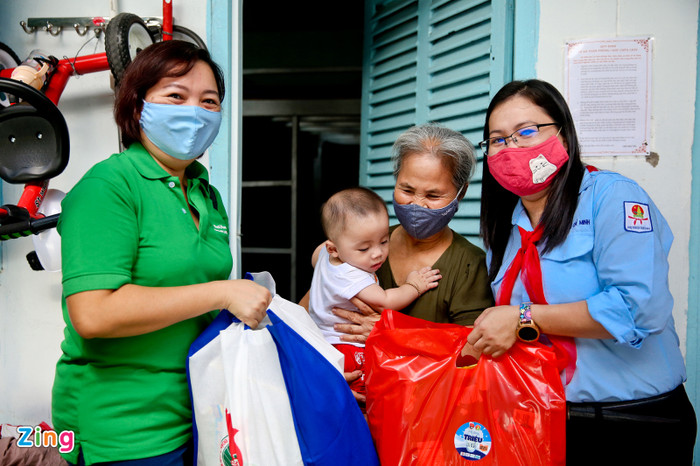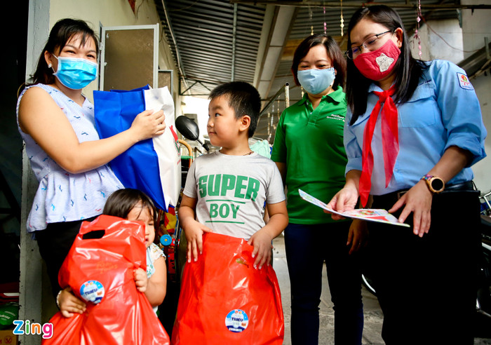 Ôm trên tay thùng sữa và các nhu yếu phẩm, chị Huỳnh Kim Anh xúc động: “Từ khi có dịch, cả nhà phải gói ghém hết cỡ. Hôm nay được tặng sữa, gạo, nước tương… nên mấy ngày tới bữa ăn cũng đỡ hơn rồi”.