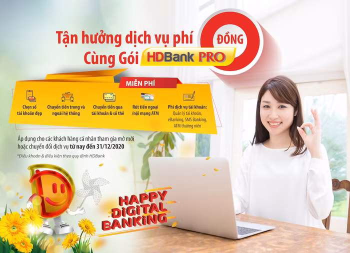 Mang đến lợi ích cao nhất đồng thời khuyến khích khách hàng giao dịch online, không dùng tiền mặt, HDBank triển khai miễn giảm phí mạnh nhất từ trước đến nay, áp dụng cho nhiều dịch vụ khi khách hàng mở Tài khoản HDBank Pro.