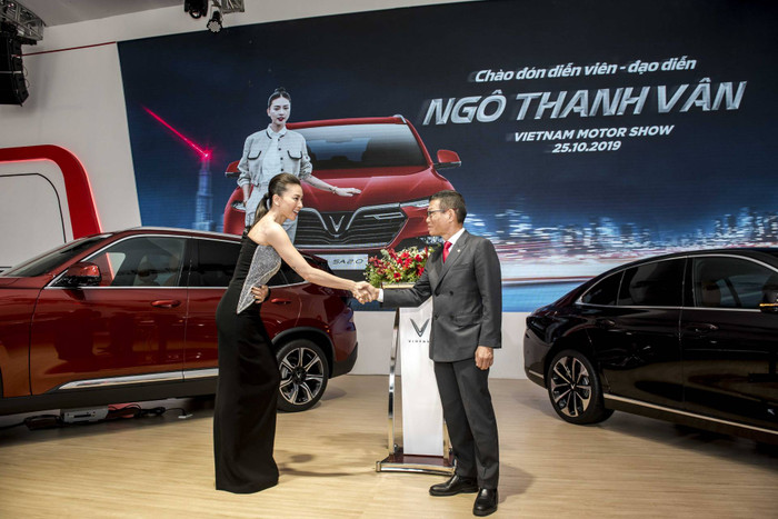 Ngày 25/10, tại gian trưng bày của VinFast trong khuôn khổ triển lãm Vietnam Motor Show 2019, ông Võ Quang Huệ - Phó Tổng giám đốc Tập đoàn Vingroup, đã giới thiệu đạo diễn - diễn viên Ngô Thanh Vân trong vai trò mới là đại sứ thương hiệu VinFast.