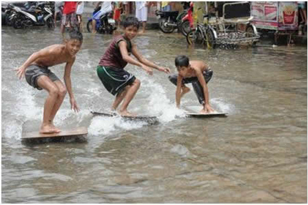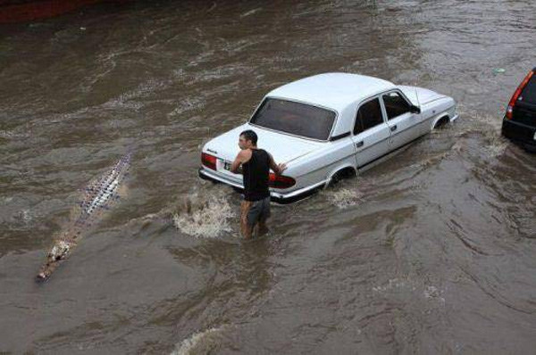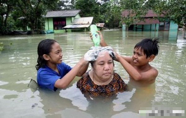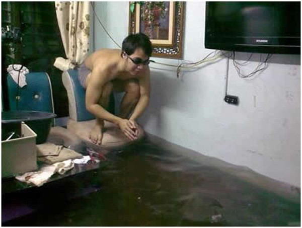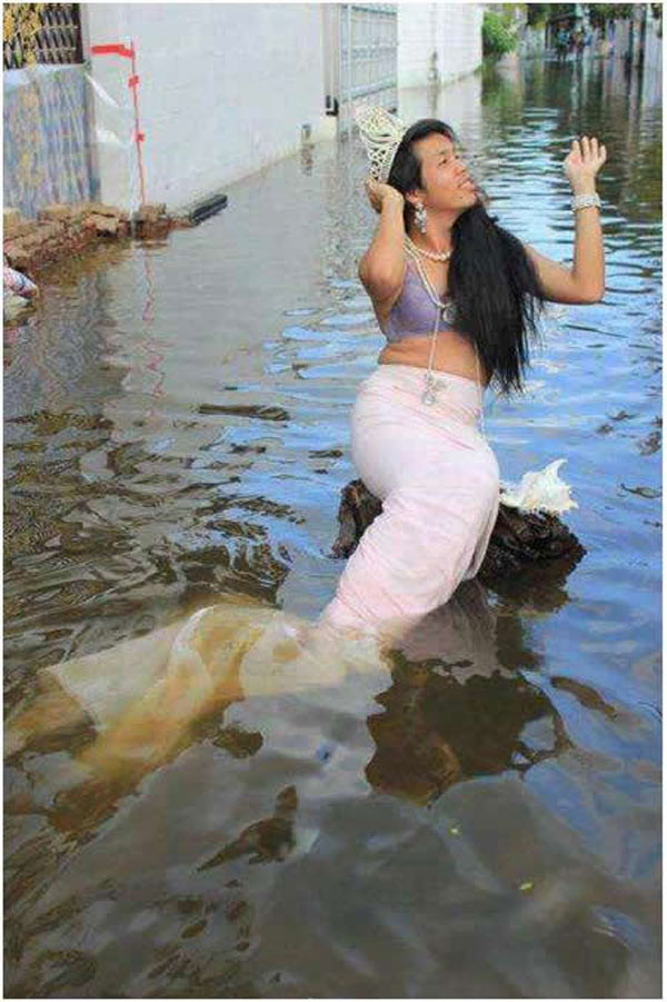 Cười ngất 'chàng tiên cá' ngày lụt