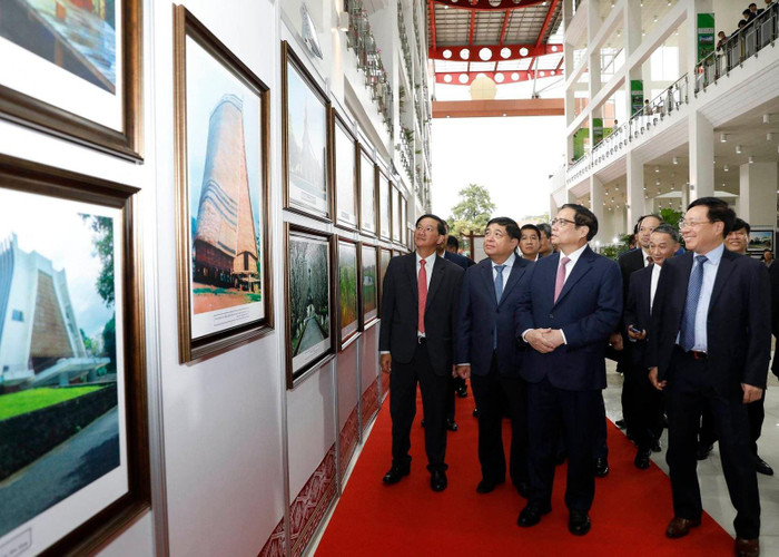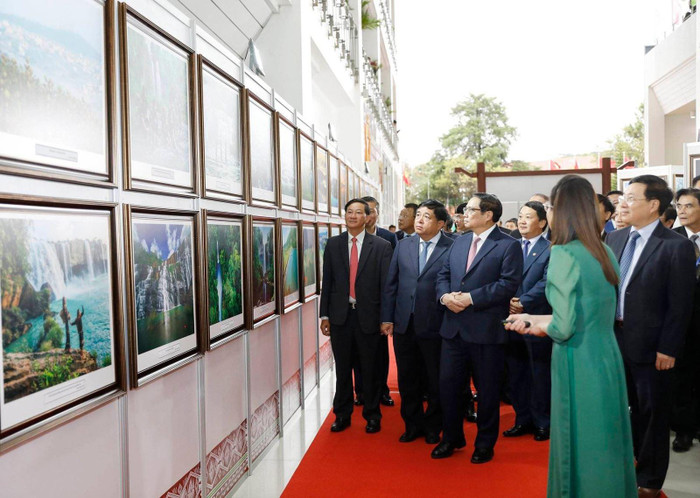 | Thủ tướng Phạm Minh Chính và các đại biểu xem Triển lãm ảnh "Tây Nguyên xanh- Hài hoà- Bền vững". Ảnh: Dương Giang/TTXVN |