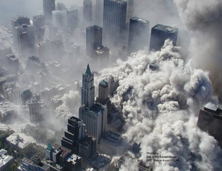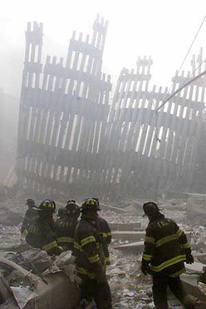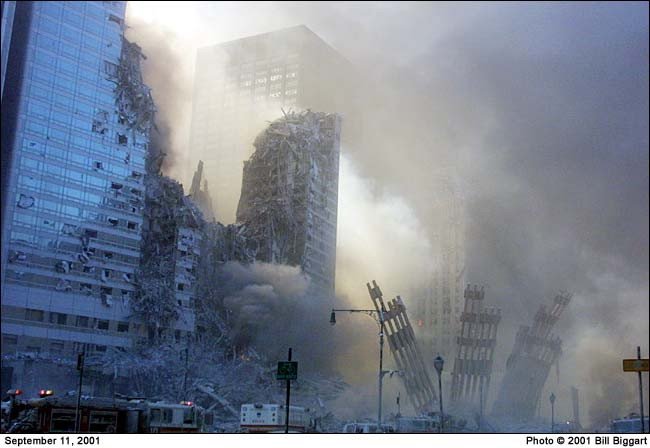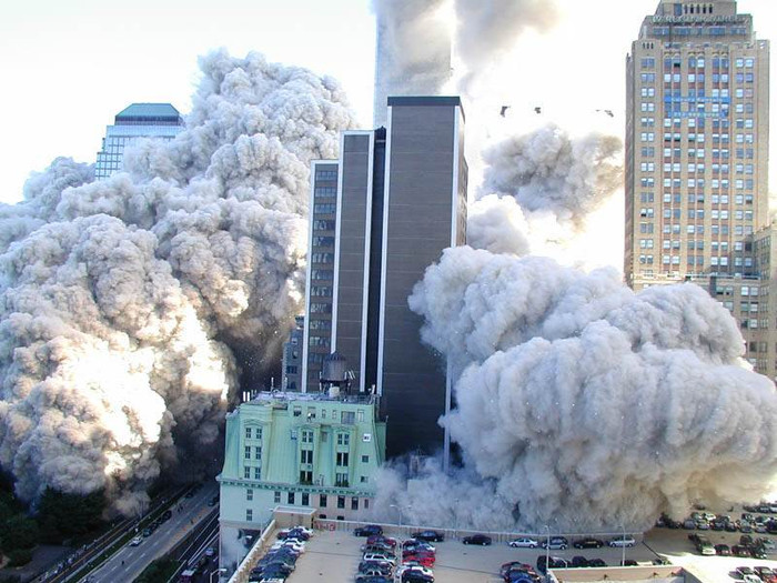 | Trong vòng hai tiếng đồng hồ, cả hai tòa tháp bị sụp đổ. |