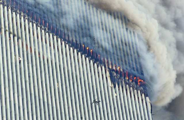 | Trong số những người có mặt trong Trung tâm Thương mại Thế giới vào lúc nơi này bị tấn công, ước tính có khoảng 200 người, tuyệt vọng vì bị nhấn chìm trong khói và sức nóng của nhiên liệu phản lực đang bốc cháy, liều mạng nhảy ra khỏi toà tháp đôi rực lửa để hứng chịu cái chết thảm khốc khi rơi xuống đường phố và trên mái của những toà cao ốc lân cận, hàng chục mét thấp hơn bên dưới. |