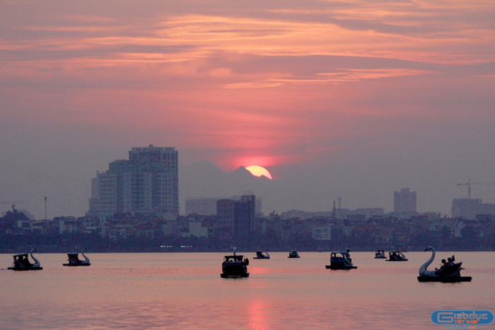 | Không gì thơ mộng bằng việc ngắm hồ Tây lúc hoàng hôn xuống trên những chiếc thuyền thiên nga |