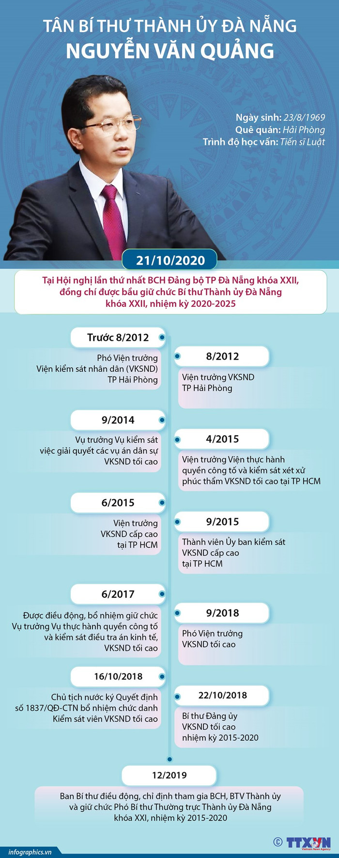 Có nhiều năm gắn bó và đi lên từ ngành kiểm sát, ông từng kinh qua các chức vụ Phó Viện trưởng Viện Kiểm sát nhân dân Tối cao trước khi được Ban Bí thư điều động, chỉ định giữ chức Phó Bí thư Thường trực Thành ủy Đà Nẵng khóa XXI, nhiệm kỳ 2015-2020 từ tháng 12/2019.