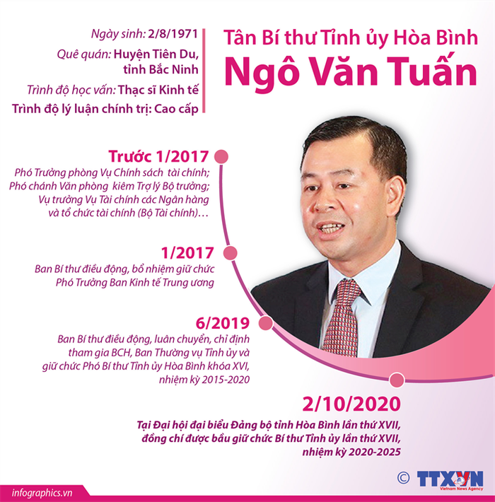 Ngày 2/10/2020, tại Đại hội đại biểu Đảng bộ tỉnh Hòa Bình lần thứ XVII, ông Ngô Văn Tuấn được bầu giữ chức Bí thư Tỉnh ủy lần thứ XVII, nhiệm kỳ 2020-2025.