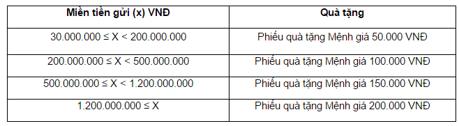 Phiếu quà tặng có giá trị tương ứng với số tiền gửi của Quý khách hàng, cụ thể như sau: