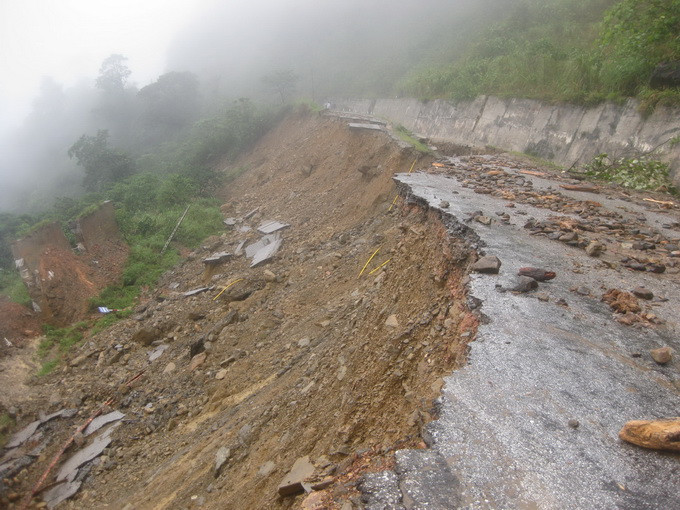 Nhiều đoạn đường bị sạt lở nghiêm trọng