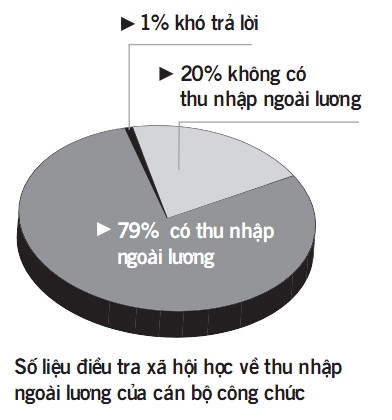 Năm 2012, Thanh tra Chính phủ chủ trì, phối hợp với Ngân hàng Thế giới khảo sát gần 2.000 cán bộ, công chức (CBCC) ở 10 địa phương và 5 bộ, ngành. Kết quả cho thấy, 79% CBCC trả lời có thu nhập ngoài lương và các khoản phụ cấp theo lương, 20% không có và 1% không trả lời.