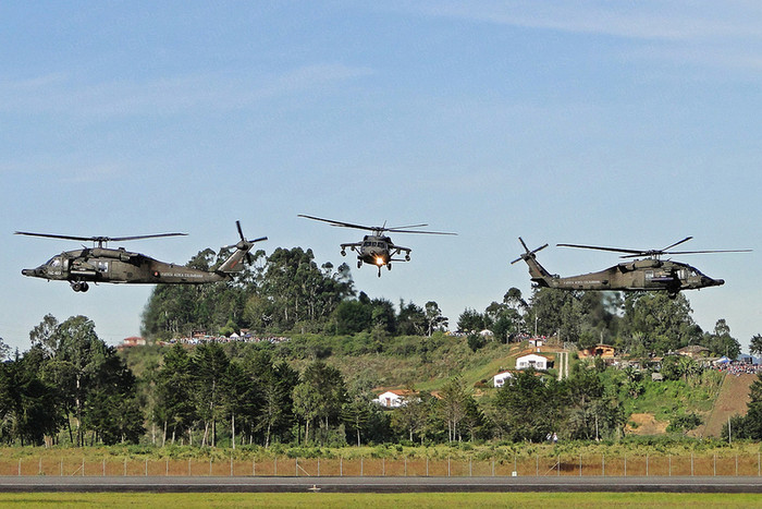 Tại một triển lãm hàng không được tổ chức tại Colombia cách đây không lâu, các máy bay trực thăng AH-60 Blackhawk của Không quân Colombia đã có cơ hội trình diễn những kỹ năng bay cực kỳ điêu luyện và tinh thế và không kém phần mạnh mẽ, hiện địa của mình.