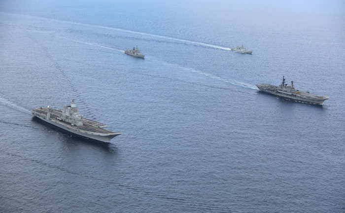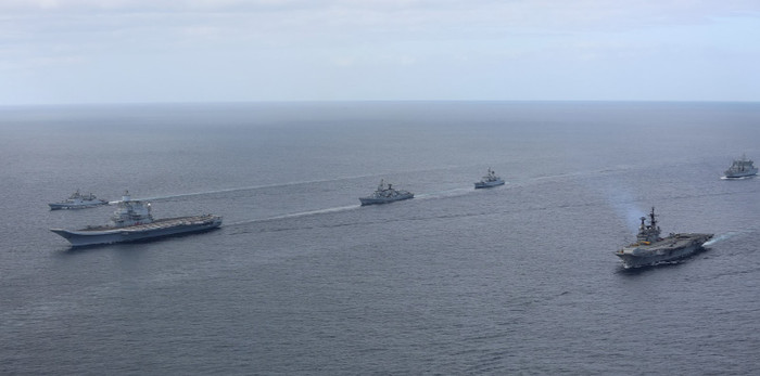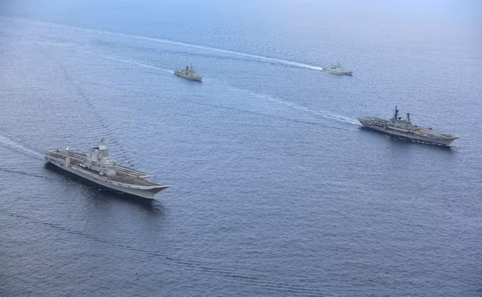 Hiện tại, biên đội hộ thống tàu sân bay INS Vikramaditya đã tiếp cận địa bàn hoạt động truyền thống của hải quân này ở Tây Bắc Biển Arập, nơi đã được các tàu chiến của Hạm đội phía Tây, có tàu sân bay INS Viraat, 2 khu trục hạm lớp Delhi, 3 khinh hạm tàng hình lớp Trishul, 1 khinh hạm lớp Godavari và các tàu tác chiến ven bờ đón đợi.