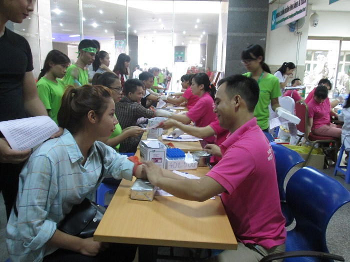 | Ngay từ 7 giờ sáng mà số lượng bạn trẻ đến đăng kí hiến máu đã rất đông. |