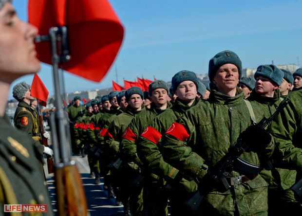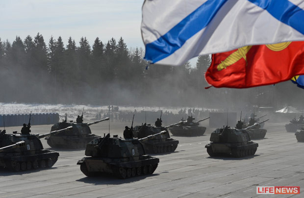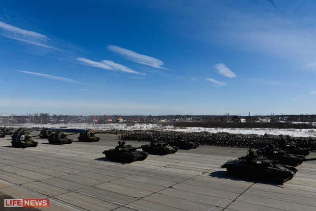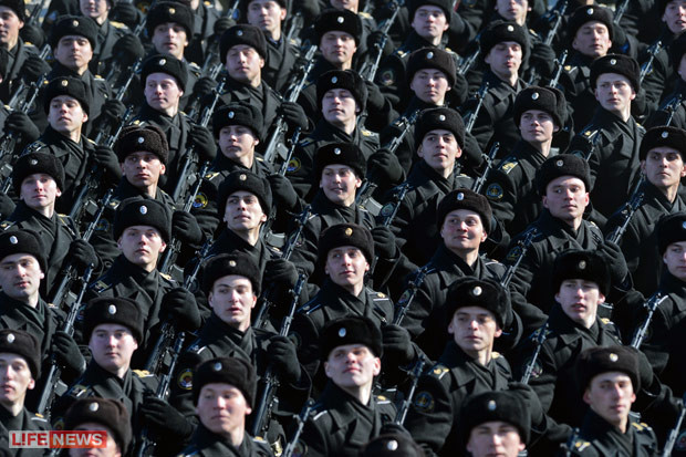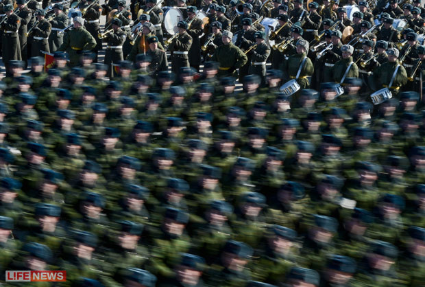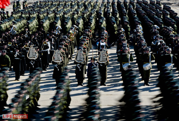 (GDVN) - Mặc dù còn 1 tháng nữa mới đến ngày nước Nga kỷ niệm Ngày chiến thắng (9/5/1945 - 9/5/2012), nhưng ngay từ đầu tháng 3 quân đội Nga đã tổ chức luyện tập để chuẩn bị cho ngày đại lễ quan trọng nhất của năm. Dự kiến, lễ diễu binh mừng Ngày chiến thắng năm nay sẽ được tổ chức với quy mô lớn với sự tham dự của 14.000 binh sĩ và 1.100 nhạc công cùng loạt thiết bị quân sự chủ lực của quân đội Nga.