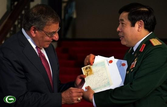 (GDVN) - Nhận lời mời của Đại tướng Phùng Quang Thanh, Bộ trưởng Bộ Quốc phòng Việt Nam, ngài Leon Edward Panetta, Bộ trưởng Bộ Quốc phòng dẫn đầu Đoàn đại biểu cấp cao Bộ Quốc phòng Hợp chủng quốc Hoa Kỳ sang thăm chính thức Việt Nam, đã đến tỉnh Khánh Hòa ngày 3/6.
