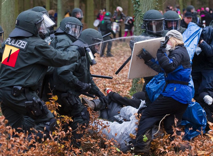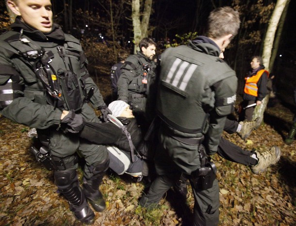 | Trước đó, hôm 7/11 hàng trăm người đã phong toả tuyến đường sắt nơi đoàn tàu 14 toa, chở 123 tấn rác thải hạt nhân đi qua tại thị trấn Morschen. |