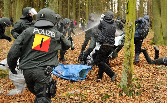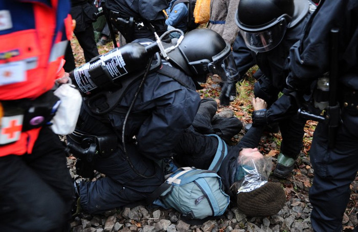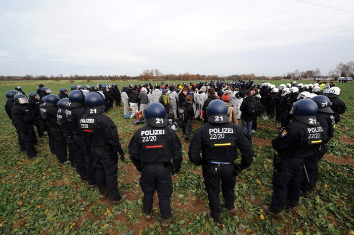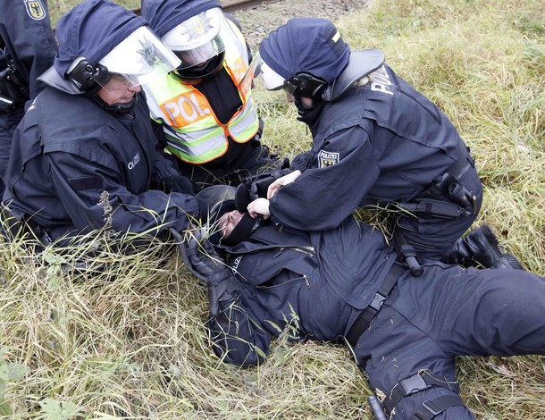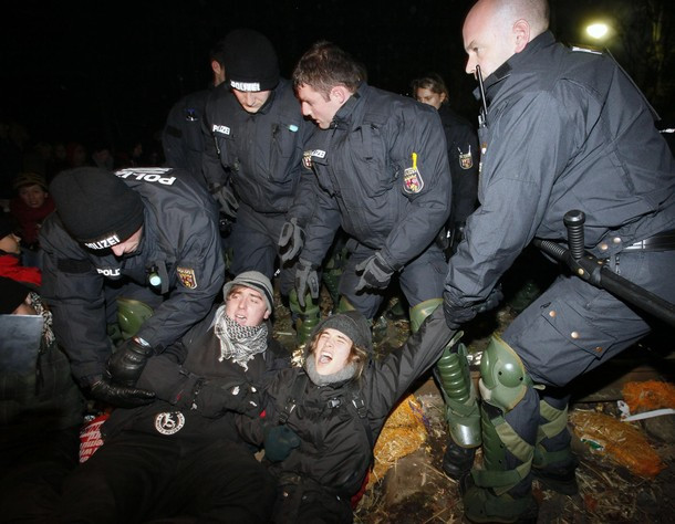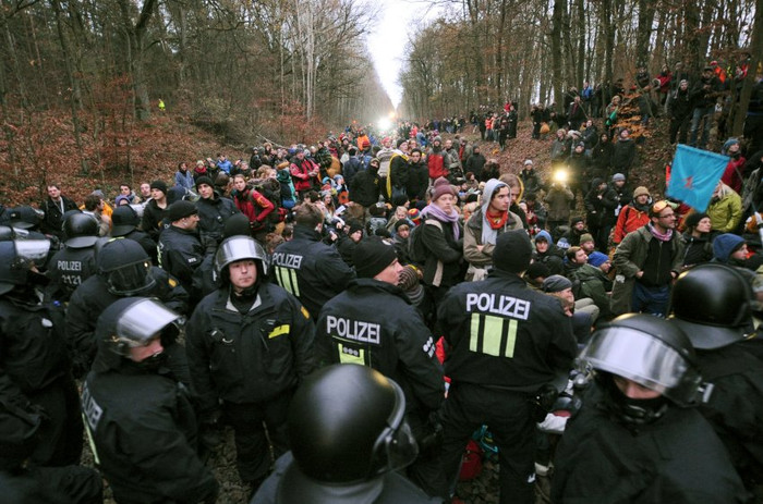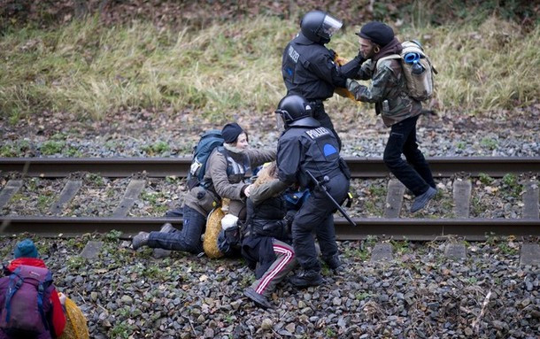 | Đây là cuộc biểu tình lớn nhất tại Đức để phản đối vận chuyển rác thải hạt nhân từ Pháp đến Đức. Khoảng 16.000 cảnh sát đã được huy động đến đối phó với người biểu tình. |