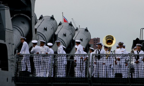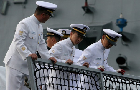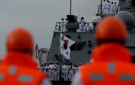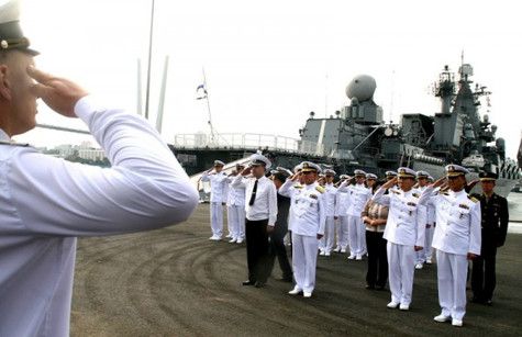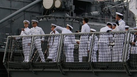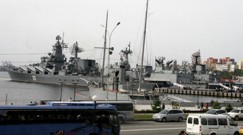 | Tuần dương hạm gắn tên lửa Varyag của hạm đội đóng vai trò tàu chủ nhà để đón tiếp các chiến hạm của Hải quân Hàn Quốc.. |