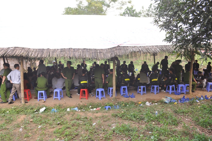 | Cơ quan công an kiểm tra tang vật tại hiện trường |
