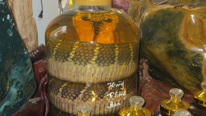 | Cơ quan chức năng cũng đã phát hiện trong cửa hàng có rất nhiều bình rượu ngâm động vật và nhiều loại thảo dược khác nhau, trong đó có cả cành và quả cây anh túc. |