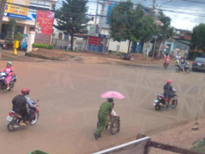 | Thượng sỹ Nguyễn Anh Tuấn, Đội CSGT số 3 đã bị một đối tượng côn đồ dùng dao tấn công từ phía sau, khi đang làm nhiệm vụ tại ngã tư Láng Hạ, Thái Hà, |
