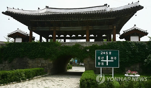 Cổng thành Namdaemun trong thành cổ Kaesong.