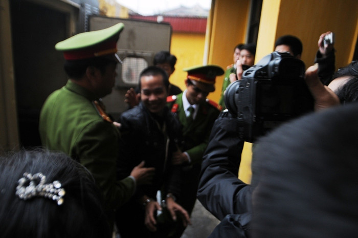 | Ngay từ sáng sớm, Đặng Trần Hoài đã được đưa đến phòng xét xử |