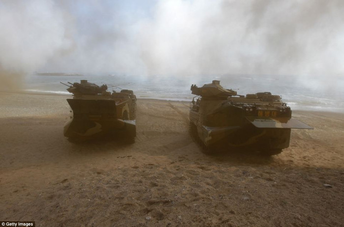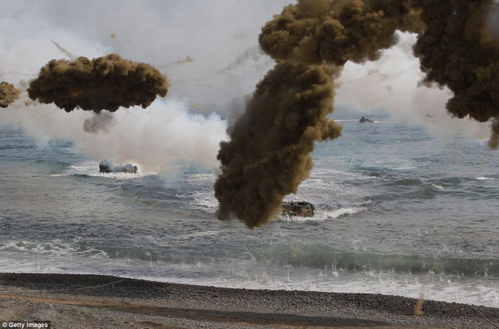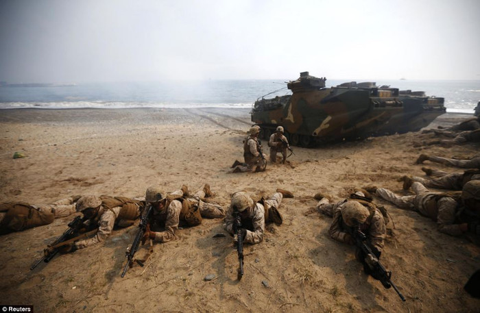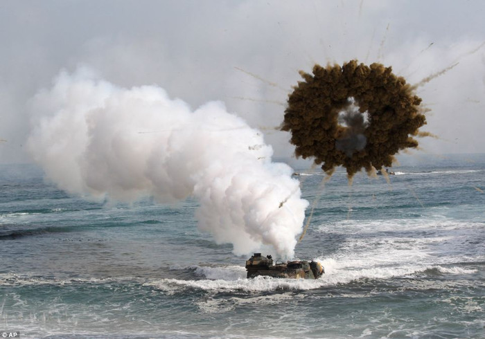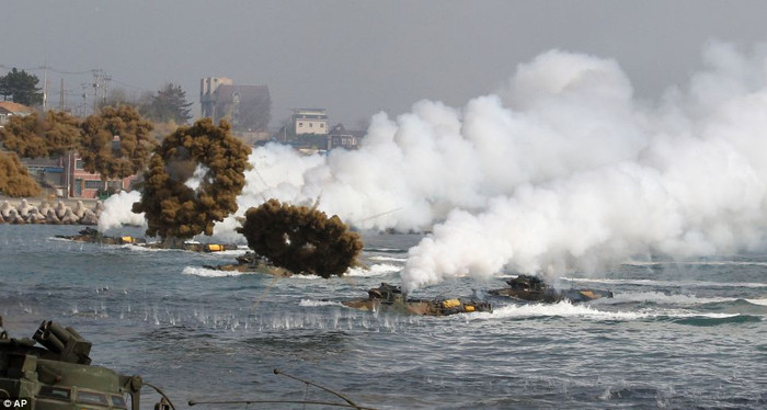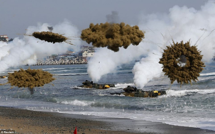 Cùng ngày, quân đội Mỹ và Hàn Quốc đã tiến hành một cuộc tập trận Foal Eagle trên bãi biển tại Pohang, bắt đầu từ Thứ Năm tuần trước. Cuộc tập trận này là một phần của cuộc tập trận chung thường niên quy mô lớn của quân đội Mỹ và Hàn Quốc mà nó thường bị Bình Nhưỡng lên án là cuộc diễn tập chiến tranh xâm lược quốc gia này.