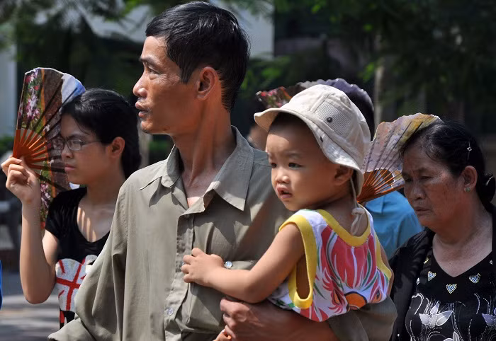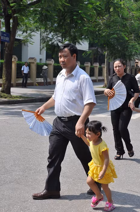 Dù thời tiết có nắng nóng nhưng dòng người đổ về đây ai cũng thể hiện một tâm trạng thành kính và xúc động niềm tự hào về một Bác Hồ - Vị cha già kính yêu của dân tộc Việt Nam.