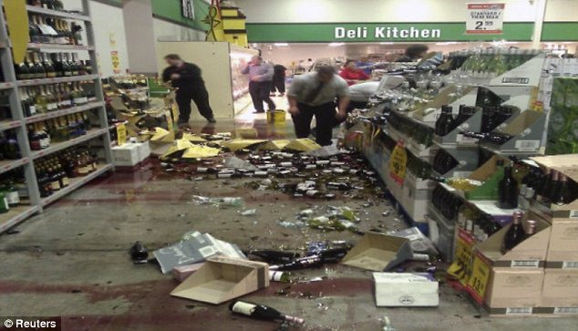 | Cảnh đổ nát bên trong một siêu thị tại Christchurch, New Zealand sau động đất |