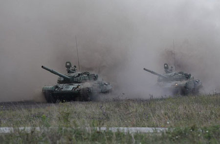| Xe tăng T-72 được điều động tham gia tập trận. |