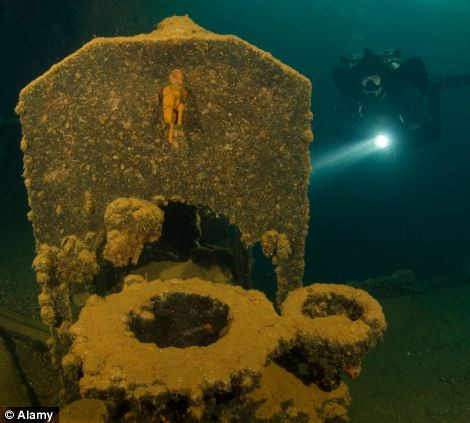 Một chiếc xe hơi bị chìm xuống biển theo con tàu đắm.