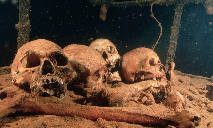 Hộp sọ của các binh sĩ Nhật Bản thiệt mạng trong vụ oanh tạc của Mỹ.