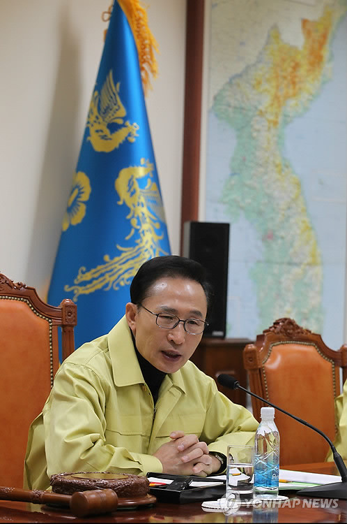 | Tổng thống Hàn Quốc Lee Myung-bak chủ trì một cuộc họp khẩn cấp của Hội đồng An ninh Quốc gia tại văn phòng tổng thống Cheong Wa Dae ở Seoul |