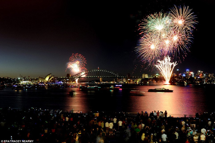 (GDVN) - Đúng 20 giờ theo giờ Hà Nội, thành phố Sydney đã bắt đầu màn bắn pháo hoa Giao thừa rực rỡ chào đón năm mới 2012. Tất cả 14 tấn pháo hoa đã được bắn lên trời thành phố chỉ trong vòng 3 giờ đồng hồ.