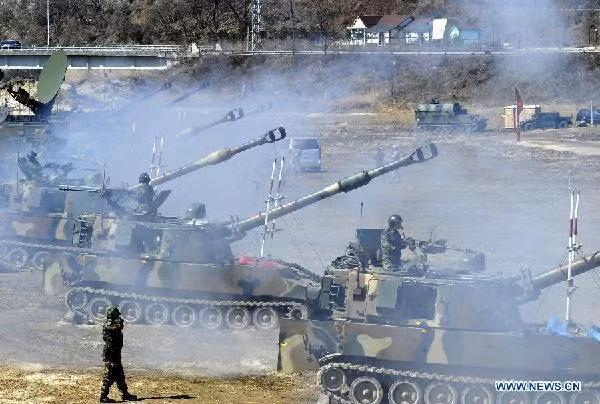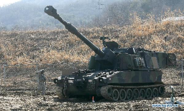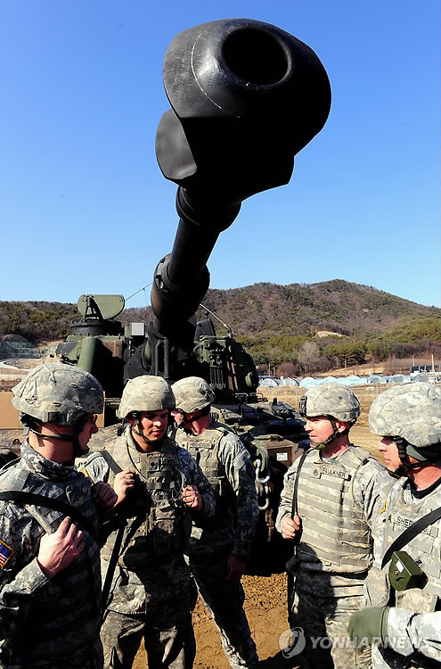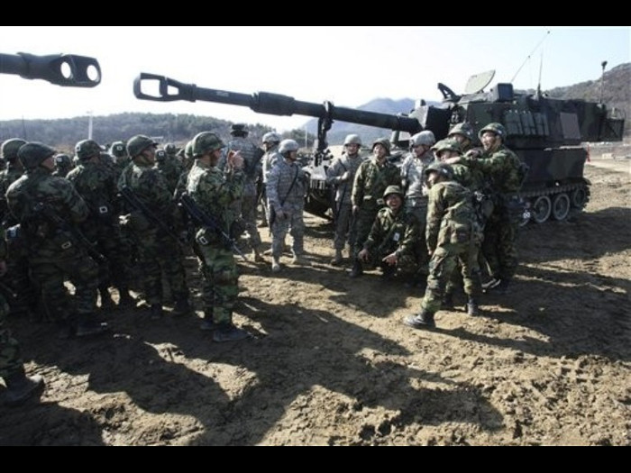 (GDVN) - Hình ảnh quân đội Mỹ và Hàn Quốc tham gia trập trận bắn đạn thật mang tên Rodriguez tại căn cứ ở Pocheon, Hàn Quốc hôm 15/3/2012. Đây là một phần của cuộc tập trận chung thường niên giữa quân đội hai nước mang tên Foal Eagle/Key Resolve với sự tham gia của khoảng 20.000 binh sĩ.