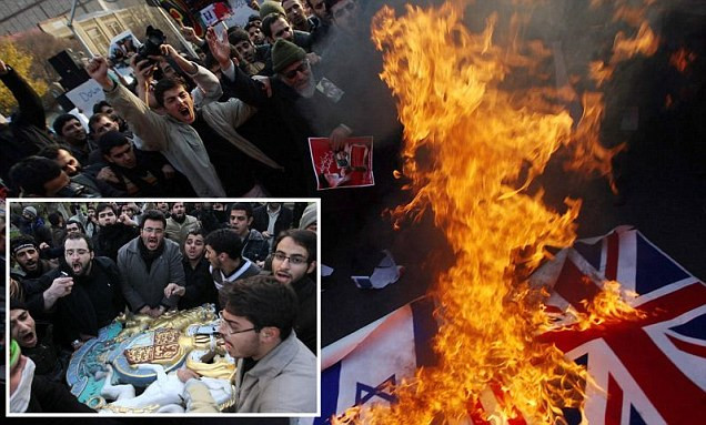 Những người biểu tình đã bắt giữ 6 nhân viên Đại sứ quán, lấy đi nhiều tài liệu quan trọng ở bên trong và đập vỡ các cửa kính, tháo gỡ quốc huy, đốt quốc kỳ của Anh để phản đối lệnh trừng phạt mới của London đối với Iran.
