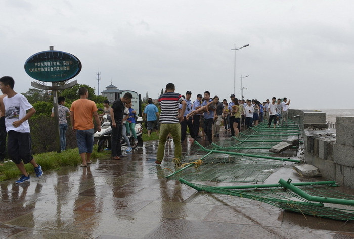 Bất chấp nguy hiểm, nhiều người Trung Quốc hiếu kỳ vẫn ra sát lan can đê chắn sóng.