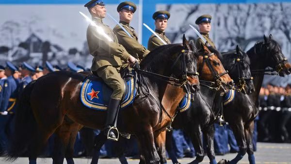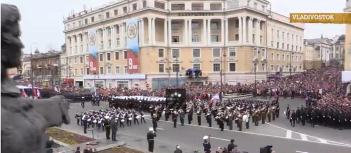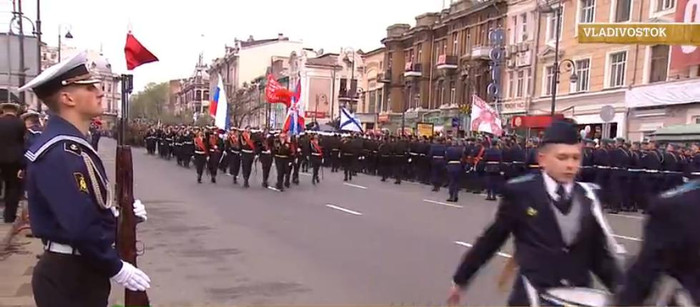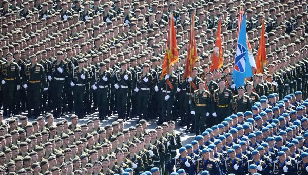 | Binh sĩ Nga hô vang khẩu hiệu "Hoan hô" khi tiến vào Quảng trường Đỏ, |
