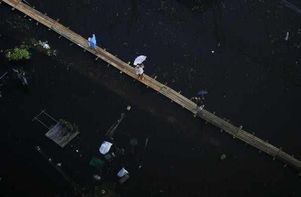 | Hàng triệu người đã phải rời bỏ nhà cửa như thế này vì lũ lụt kéo dài suốt 2 tháng qua tại Thái Lan |