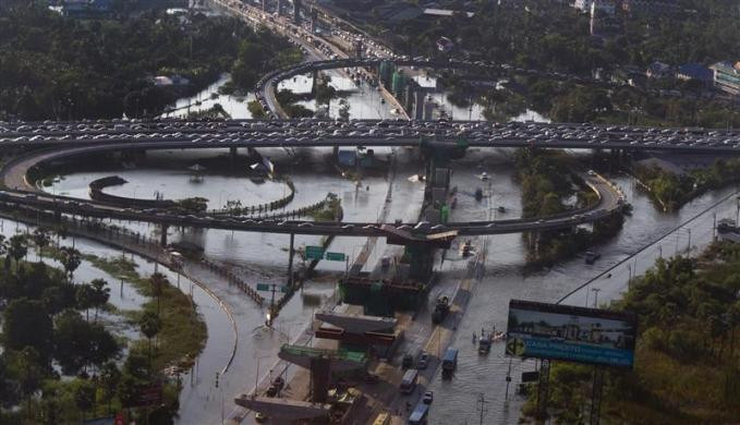 | Nước lũ tấn công đường cao tốc ở ngoại ô Bangkok |