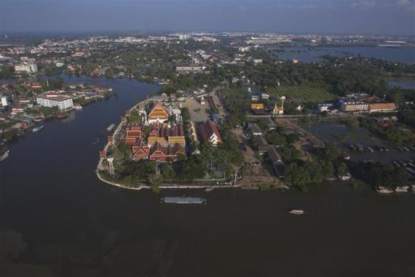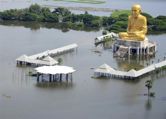 | Nước lũ nhấn chìm nhiều khu vực tại tỉnh Ayutthaya hôm 10/10/2011 |