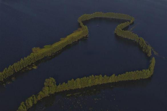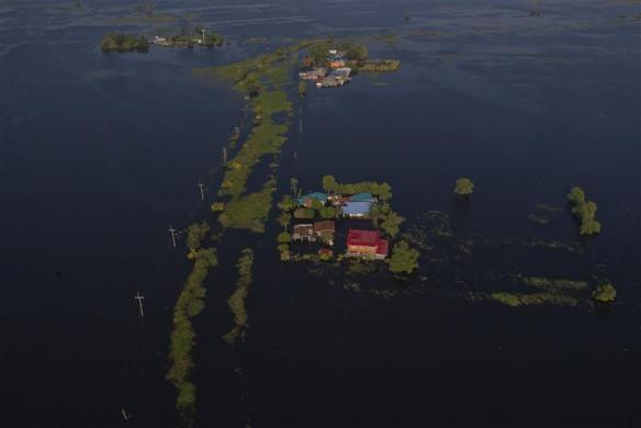 | Những ngôi nhà cũng bị bao vây bởi nước |