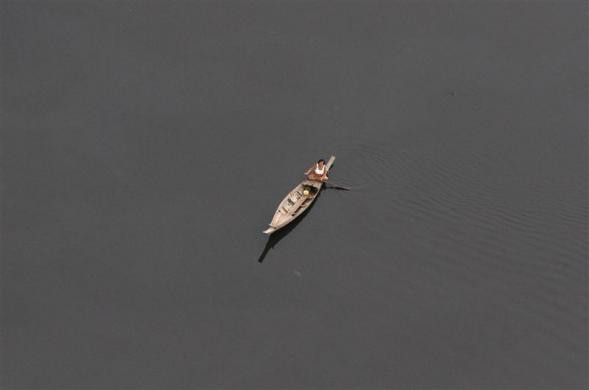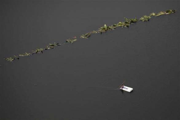 | Một con thuyền nhỏ trôi nổi giữa biển nước mệnh mông ở vùng ngoại ô Bangkok |