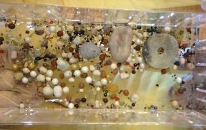 Những viên xá lợi long lanh nhiều màu sắc sau khi được lấy ra khỏi lò trà tỳ