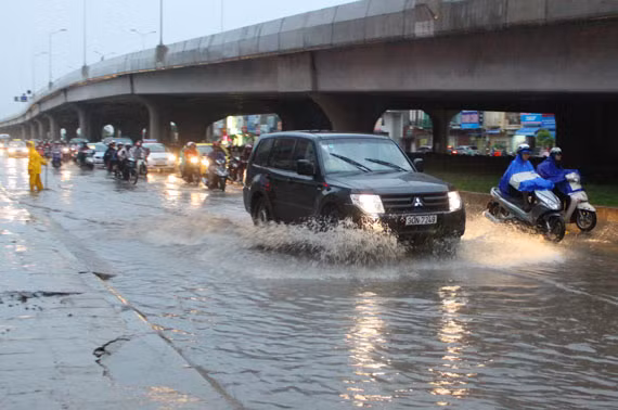 Trận mưa chỉ kéo dài trong khoảng 30 phút nhưng một số tuyến đường đã xảy ra ngập úng cục bộ như Nguyễn Xiển, Nguyễn Trãi, Kim Liên mới...