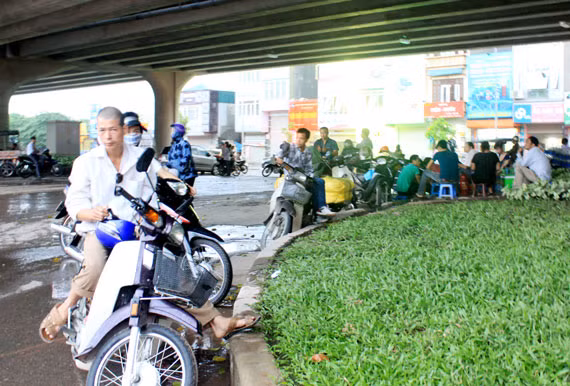 Dù trận mưa đã được dự báo trước, nhưng nhiều người ra ngoài không mang áo mưa và giải pháp tránh mưa tốt nhất được lựa chọn là đứng dưới gầm cầu cao tốc trên cao.