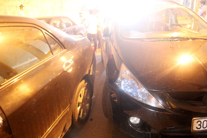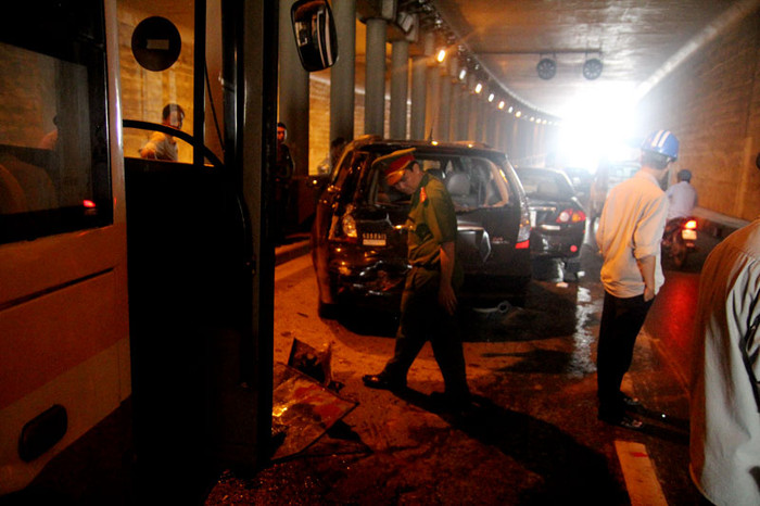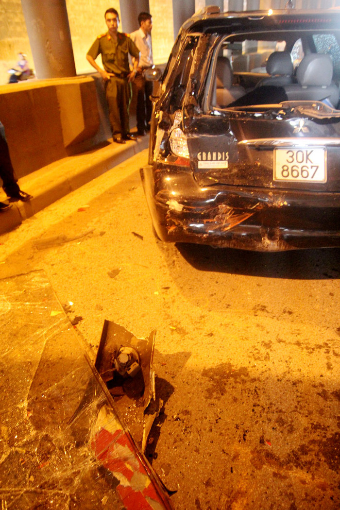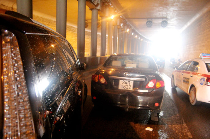 | Vụ tai nạn xảy ra ngay dưới gầm cầu Kim Liên khiến nhiều phương tiện di chuyển khó khăn. |