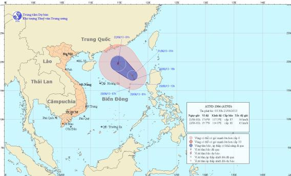 Dự báo trong 24 giờ tới, áp thấp nhiệt đới di chuyển theo hướng giữa Bắc Tây Bắc và Tây Bắc, mỗi giờ đi được khoảng 10 - 15 km và có khả năng mạnh lên thành bão. Đến 01 giờ ngày 22/06, vị trí tâm bão ở vào khoảng 19,7 độ Vĩ Bắc; 114,8 độ kinh Đông, cách quần đảo Hoàng Sa khoảng 410 km về phía Đông Bắc. Sức gió mạnh nhất vùng gần tâm bão mạnh cấp 8 (tức là từ 62 đến 74 km một giờ), giật cấp 9, cấp 10.